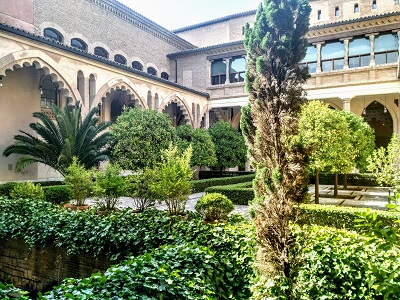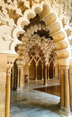 If you have ever traveled to the south of Spain, to Granada, which “excites to the point of undoing and melting all the senses”, and you had the opportunity to visit the magnificent Muslim palace that dazzles through its beauty, the Alhambra, I have good news for you. Zaragoza also has a majestic palace, built during the time of its greatest splendor, the Taifa of Zaragoza, which was established after the fall of the Umayyad Caliphate of Córdoba in the 11th century. And although the The Palace of Alfajería began with an architectural work of Islamic art, later after the Christian conquest the Palace had Mudejar influence and was expanded on several occasions. It even served as Headquarters for the fearsome Inquisition, established in the Peninsula during the time of the Catholic Monarchs, Isabel I of Castile and Fernando II of Aragon. On the outside it surprises with its fortress-type construction, it is more like a medieval defensive castle and is architecturally related to the Ribat of Susa, inhabited by the warrior-monks who watched over the Islamic faith. Its interior, however, offers a more palatial character as it is filled with the innumerable mixtilinear, horseshoe, semicircular, interlaced, pointed arches, etc., which together with a magnificent patio, full of pools and plants that cool off in a sunny summer day, they will seduce you and make you imagine the life that once existed within its thick walls, full of circular towers. A way to travel in time.