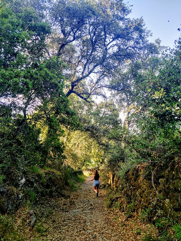 The Sierra de Aracena is known for being the dehesa area, a vast area dedicated in Spain to the cultivation of cattle, and in this case specifically, it is dedicated to the breeding of the Iberian pig, famous for its delicious Iberian ham. Iberian ham is so good in flavor due to the fact that pigs eat acorns from cork oaks, holm oaks and gall oaks. These trees form splendid forests in which you can go hiking and disconnect surrounded by lush green nature that invites you on hot summer afternoons due to its freshness. I loved the route along the Path of the Mills in Cortegana, which runs alongside a stream. By the way, cork oaks are trees with red bark that predominate in the western part of the Peninsula and grow on silicon soils. Cork is obtained from its bark and for several years in Spain the fashion industry has stood out, creating accessories (bags, purses, boxes) of cork. Really cute and ecological objects. Holm oaks, on the other hand, appear in almost all peninsular areas and their elongated leaves are perfectly adapted to high temperatures. The gall oaks, similar to holm oaks, also offer acorns to Iberian pigs and their wood is perfect to be used in construction due to its high density.