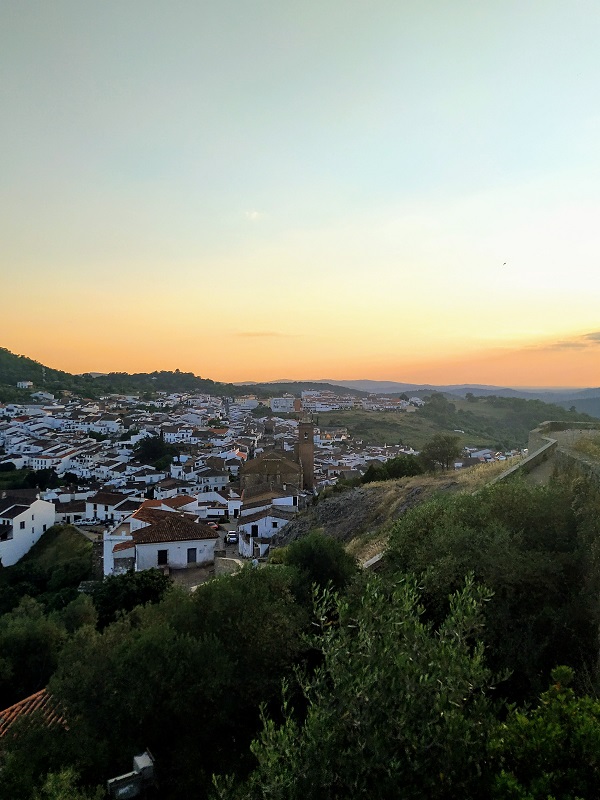 Another magnificent town that you should visit if you come to the Sierra de Aracena is Cortegana. At the top of the mountain of this town there is a spectacular medieval castle, whose construction is attributed to the Castilian monarch Sancho IV, who gave the order to build different defensive fortifications in this area as it was the border between the Christian and Muslim world. And also the border between the Kingdom of Castile, today part of Spain, and the Kingdom of Portugal. In the face of enemy attacks, the nearby Seville was warned with smoke signals to help in defense. Its walls are so thick that they even reach four meters, which allows keeping the rooms away from the cold, and, above all, the heat that devastates these lands every summer. The interior of the Iberian Peninsula has a dry Mediterranean climate with high temperatures in the summer period, often above 40ºC. I think it is no longer necessary to repeat it, but just in case, the views from above, especially at sunset, are incredible. You can see the town, the green fields of pasture and the typical forests of the area.
