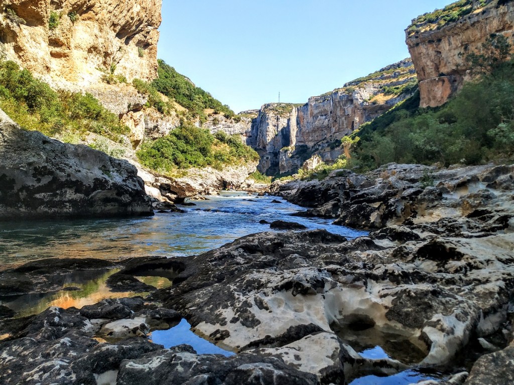 On the way to Jaca, the Aragonese city and the former capital of the Kingdom of Aragon, and 43km from Pamplona, there is a wonderful rock formation, called Foz de Lumbier. It is a great option to take a short hiking route and cool off in the crystal clear waters of the magnificent Irati River. It is impossible not to be surprised by the wonderful views offered by this narrow gorge, the habitat of numerous birds of prey.