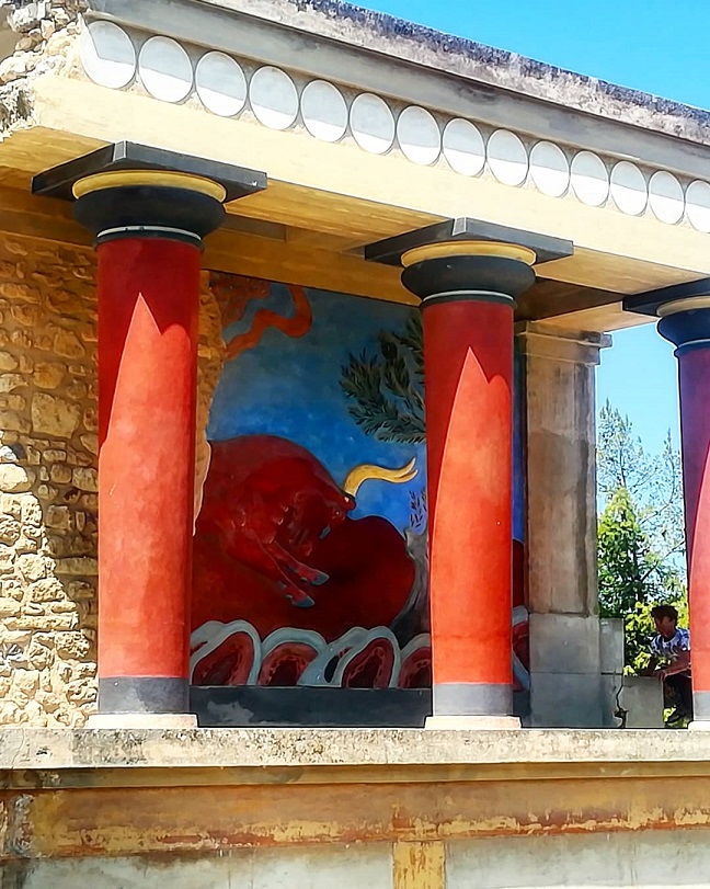 The Minoan civilization, prior to the Hellenistic culture, took place in the Copper and Bronze Ages on the island of Crete. By the way, Crete is the largest island in Greece, as well as being the fifth largest in the Mediterranean Sea. The Palace of Knossos was built around 2000 BC, and it became both the royal residence and the religious headquarters. Due to its complex structure, with numerous corridors and halls, it is attributed the mythological legend of the Minotaur Labyrinth. A monster with a human body and a bovine head that inhabited the labyrinth, built by Daedalus, and fed on virgins. He was assassinated by the Greek hero and king of Athens, Theseus, who had the help of Ariadne, the daughter of King Minos, to get out of the labyrinth alive.