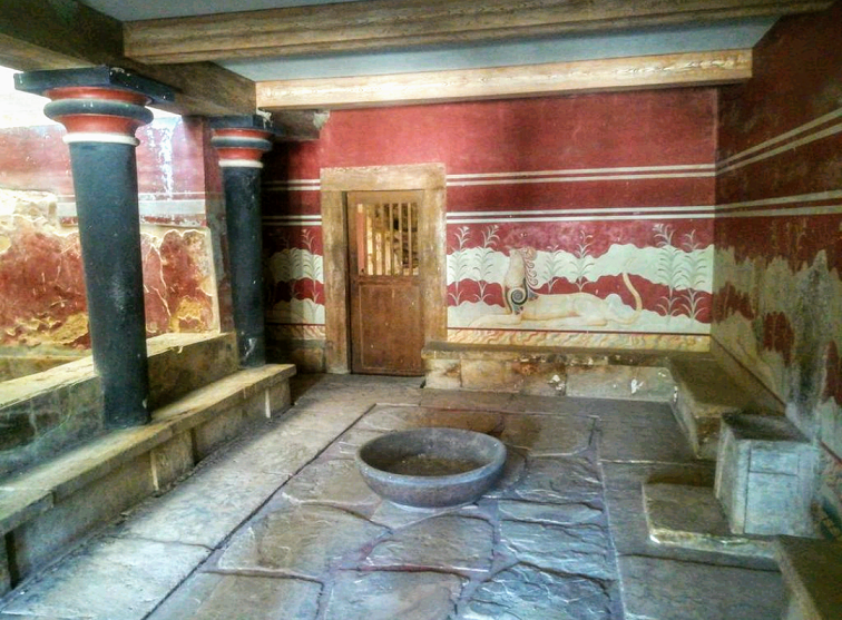 The Palace of Knossos had about 1500 rooms, and today it is still possible to contemplate the Throne Room, decorated with frescoes, among which you can see figures of two symmetrical Griffins, while in the Queen’s Room the frescoes depicting dolphins. On the other hand, numerous ceramic objects have been discovered in the Palace, as well as tablets with Linear B writing, based on syllabic signs and ideograms. The Minoan language, of pre-Indo-European origin, has not yet been deciphered. On the other hand, the game board of Knossos, was found here by the archaeologist Arthur Evans, but the rules of this game have not yet been discovered.