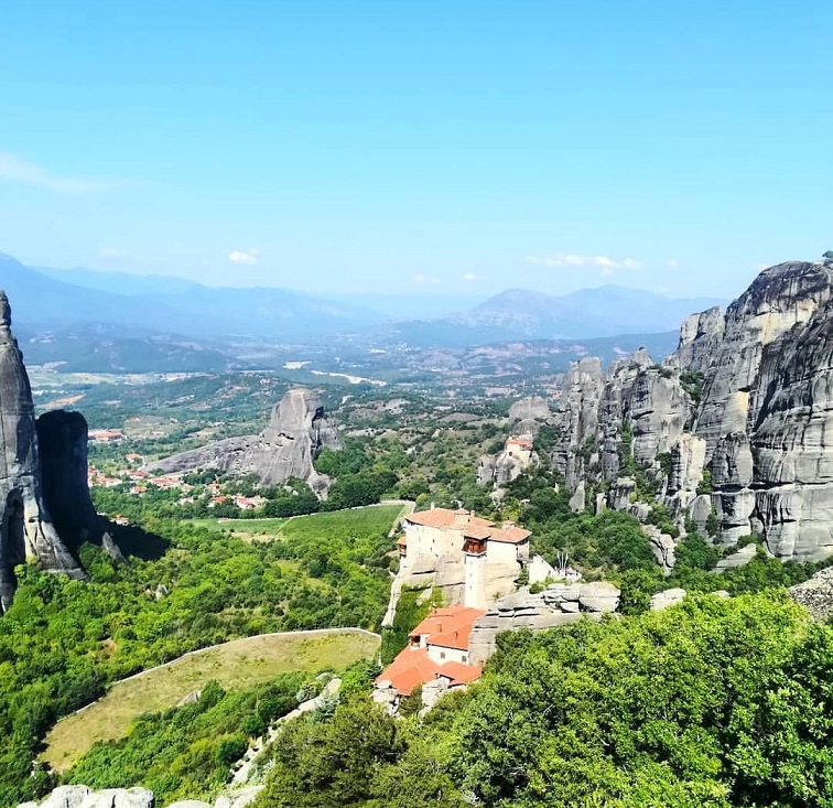 The Meteora area is located in the north of Greece, in the plain of Thessaly, a border area and hence the reason for building the monasteries on top of the rocks in order to protect themselves from enemy invasions, mainly the Ottoman Turks, that in 1453 conquered the Byzantine Empire, the old Eastern Roman Empire.