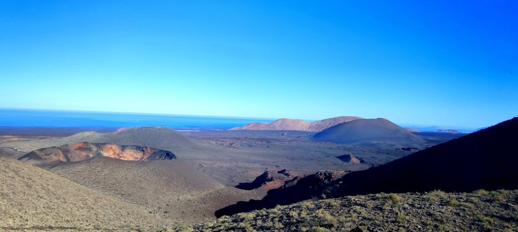 This volcanic landscape was originated after the eruptions that took place in the 18th century and affected a large part of the island. It is a landscape of lava and craters in which ocher colors of great intensity predominate: reddish and yellow. The absence of plants and the silhouette of the volcanoes give it a great beauty.