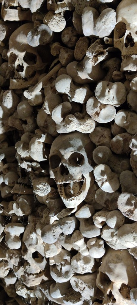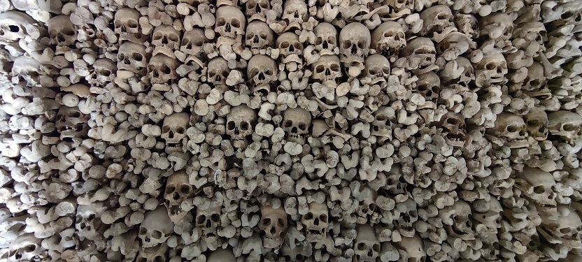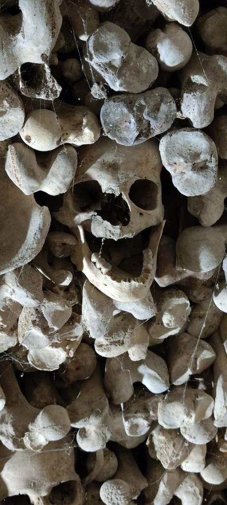 “As I see yourself, I saw myself, as you see me, you will see yourself”, can be read when entering the closed cubicle decorated with hundreds of skulls and bones of monks, as well as men, women and children, collected between the 13th and 17th century. It is the Wamba Ossuary, located in a small town near Valladolid, which receives its name in honor of the Visigothic king. To enter the Ossuary it is necessary to first visit the Mozarabic church of Santa María de la O., whose name refers to the pregnant Virgin. It is better to book the tickets in advance, although in our case we went at the time of the last visit, 6:00 p.m., and being only two people, the guide allowed us to join the previously organized group.